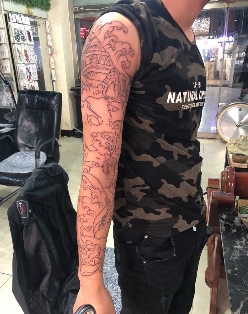 当前位置: 首页 >河北省唐山市纹身店-大明刺客纹身纹身图案>花臂线条纹身图片