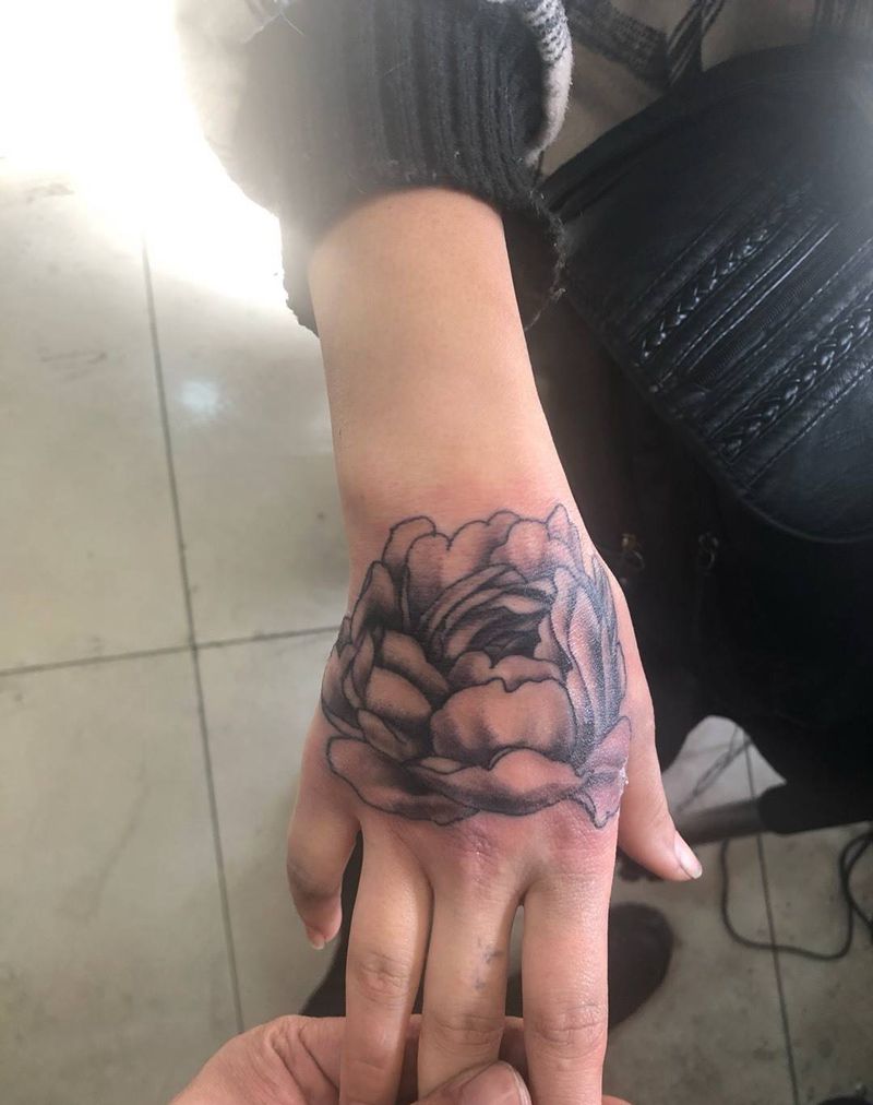 • 手背潮流时尚的玫瑰花眼睛纹身图案
