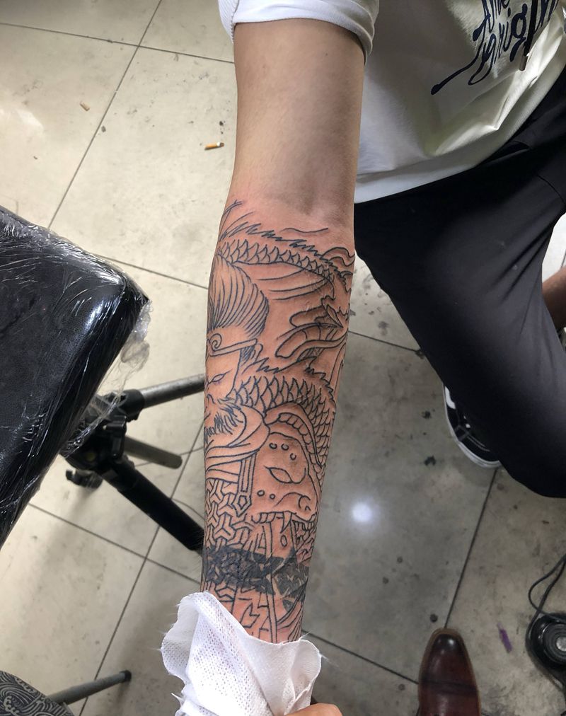 • T云龙九郎纹身图片_背部老传统云龙九郎纹身图案