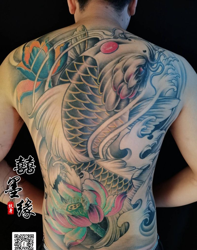 当前位置: 首页 >河北省秦皇岛市纹身店-囍墨缘TATTOO纹身图案>满背鲤鱼纹身图片_背部新传统纹身图案