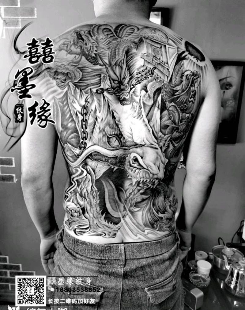 黑灰满背纹身图案