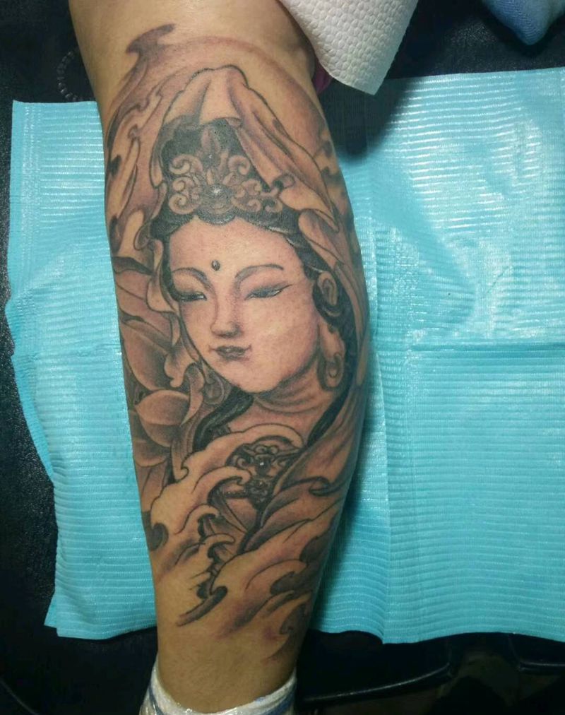 当前位置: 首页 >河北省秦皇岛市纹身店-囍墨缘TATTOO纹身图案>小腿观音纹身图片