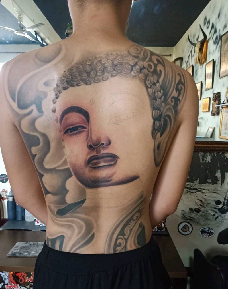 大日如来纹身图片_背部新传统老传统人物佛纹身图案