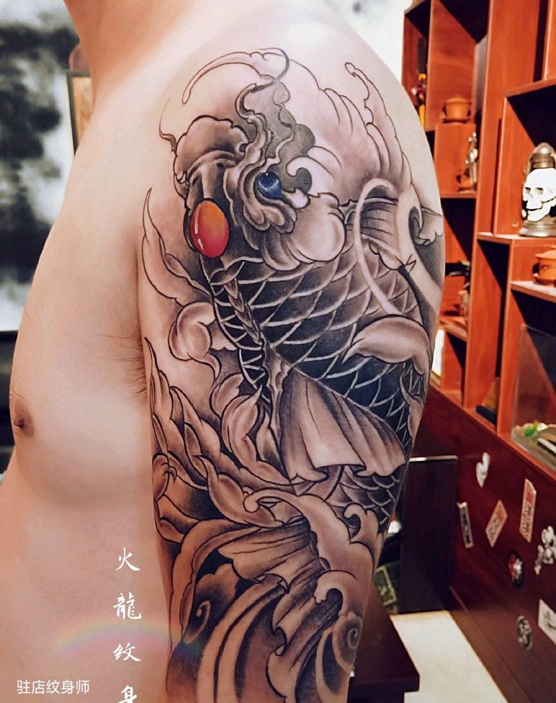 当前位置: 首页 >河北省秦皇岛市纹身店-囍墨缘TATTOO纹身图案>鲤鱼纹身图片_腿部手臂老传统新传统鱼纹身图案