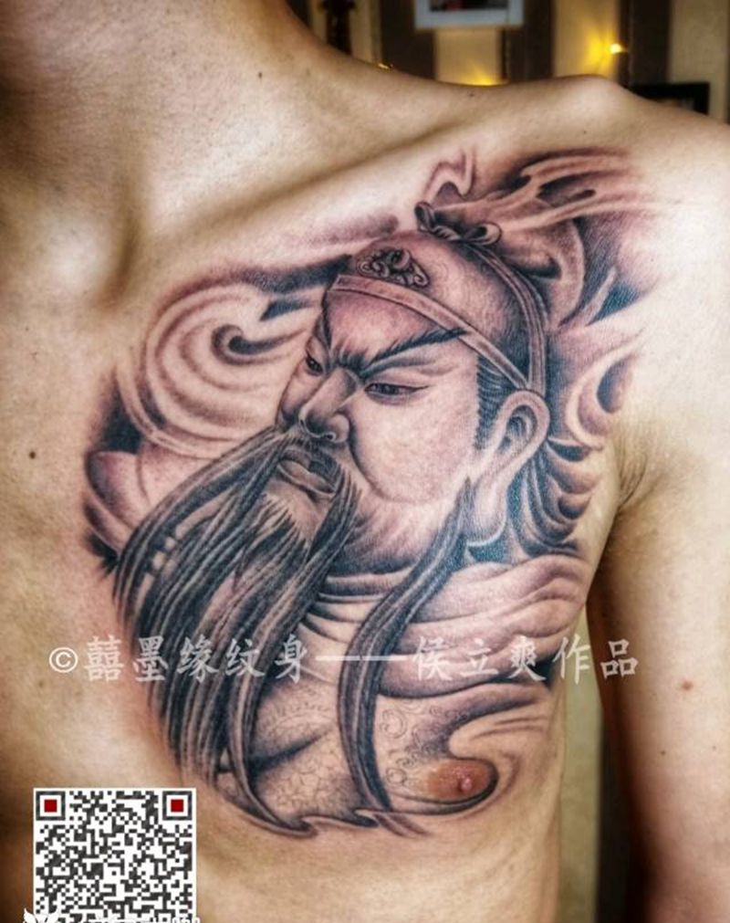 胸口关羽纹身图片