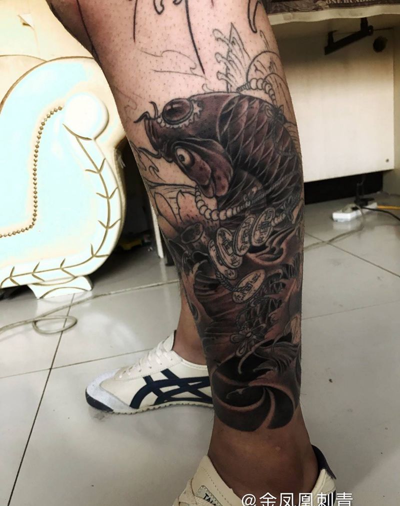 • T网红王老大花腿龙纹身图片_腿部新传统纹身图案