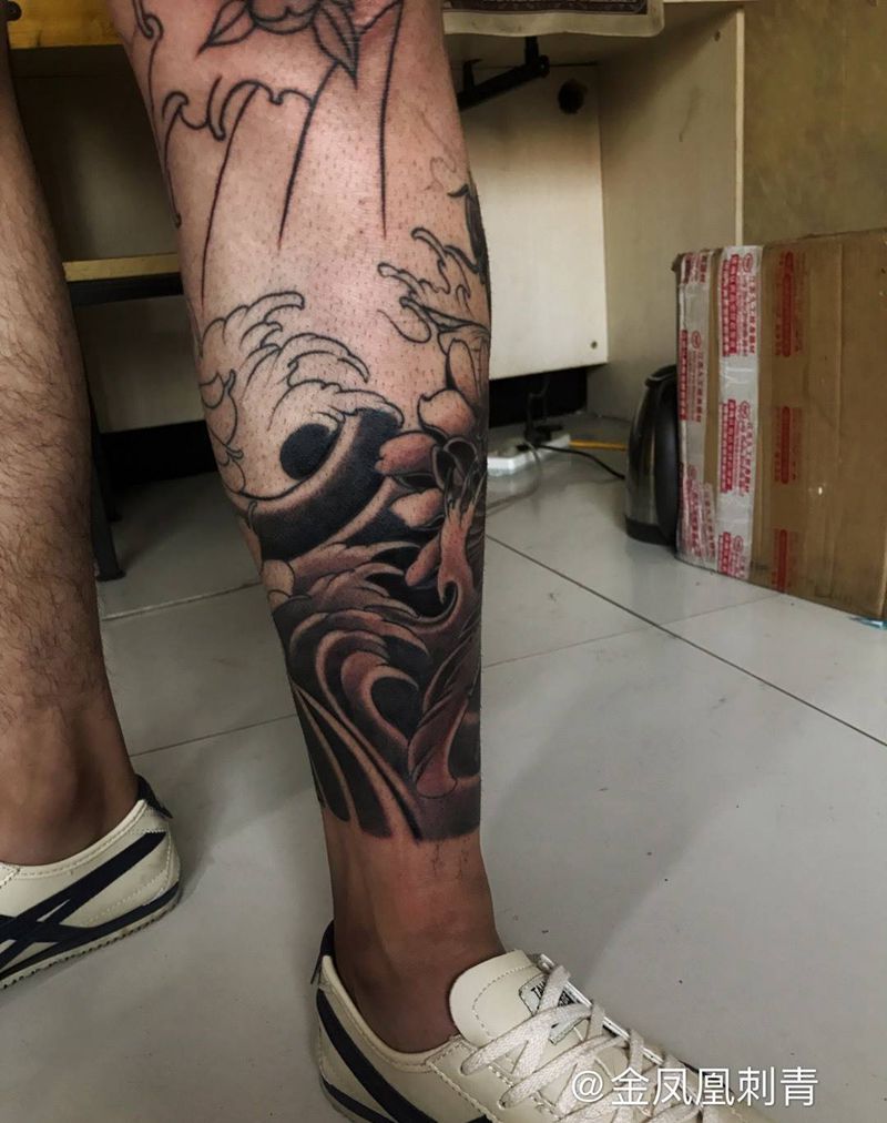 • T网红王老大花腿龙纹身图片_腿部新传统纹身图案