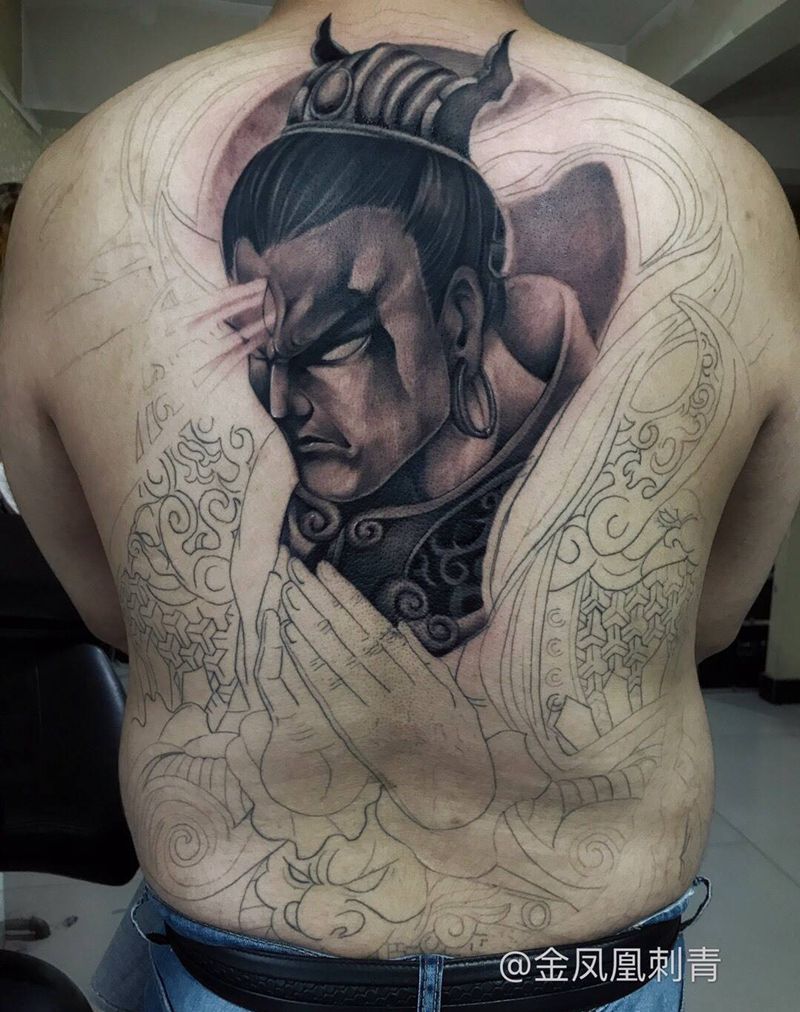 黑灰满背纹身图案