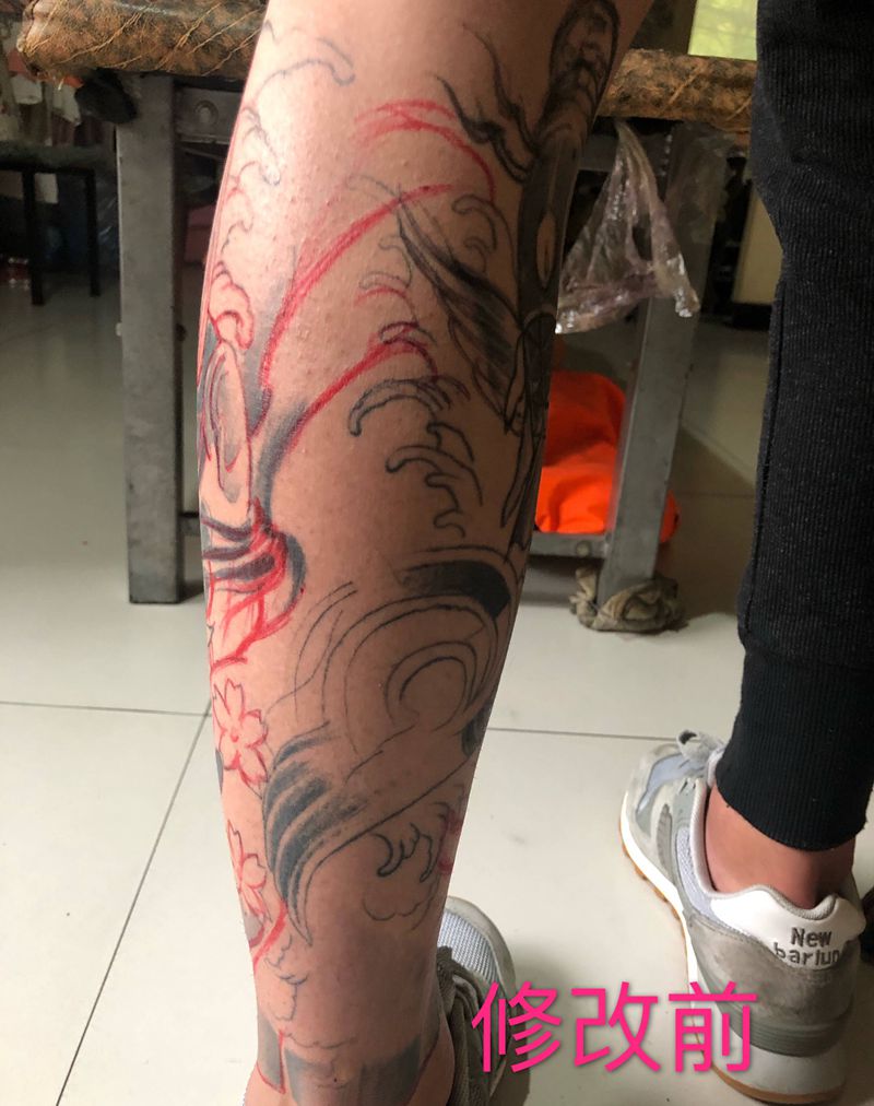 • T网红王老大花腿龙纹身图片_腿部新传统纹身图案