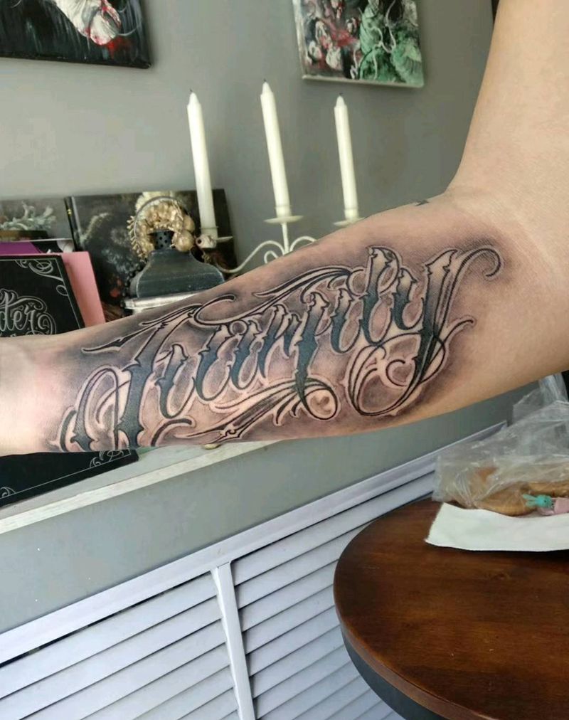 当前位置: 首页 >河北省唐山市纹身店-黑帆刺青纹身图案>两个花体字纹身图片_手臂花体字纹身图案