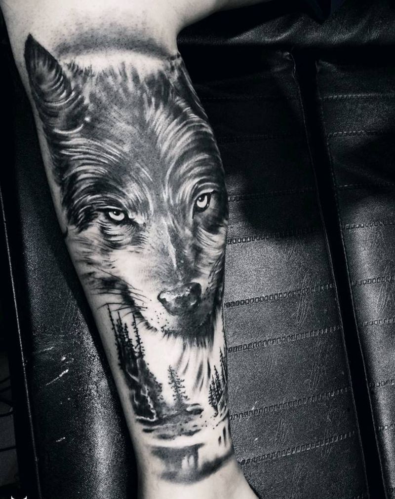 狼纹身图片_欧美写实纹身图案