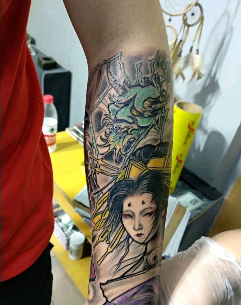 传统鬼神纹身图片_手臂新传统纹身图案