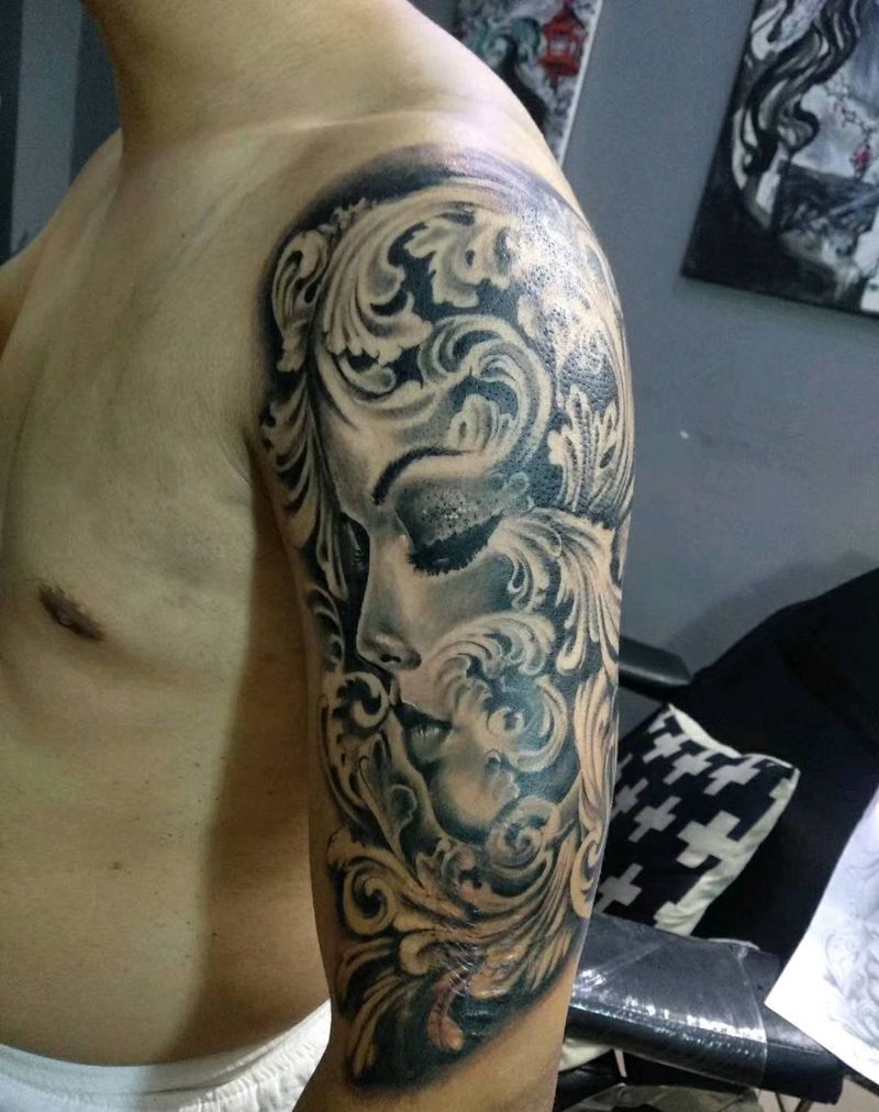 • 纹身吧推荐的披肩图腾半胛纹身图案作品展示