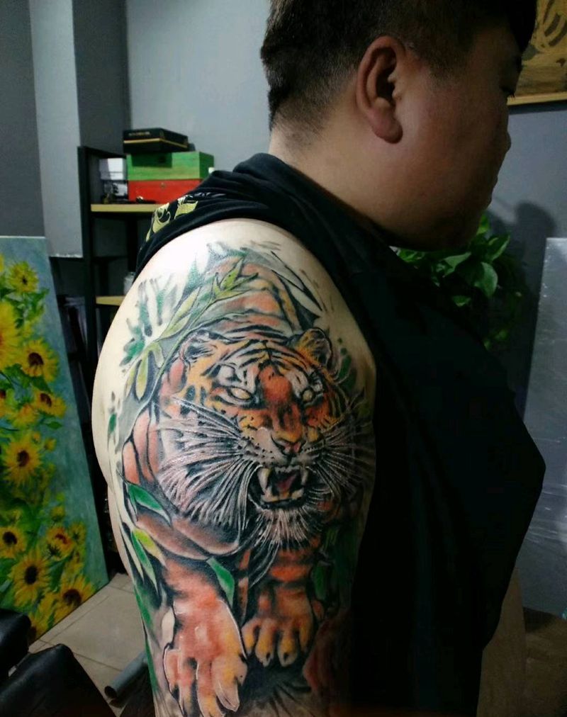 当前位置: 首页 >河北省唐山市纹身店-黑帆刺青纹身图案>老虎纹身图片_肩部欧美写实纹身图案