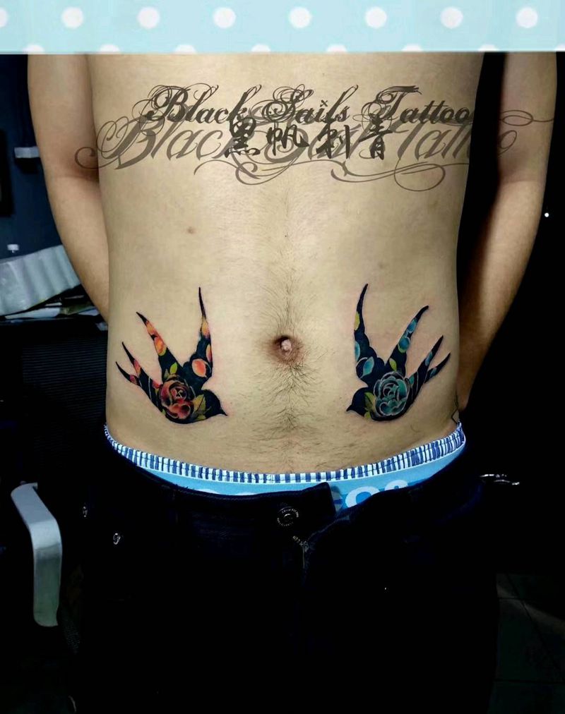 • 时尚性感的腹部莲花纹身图案