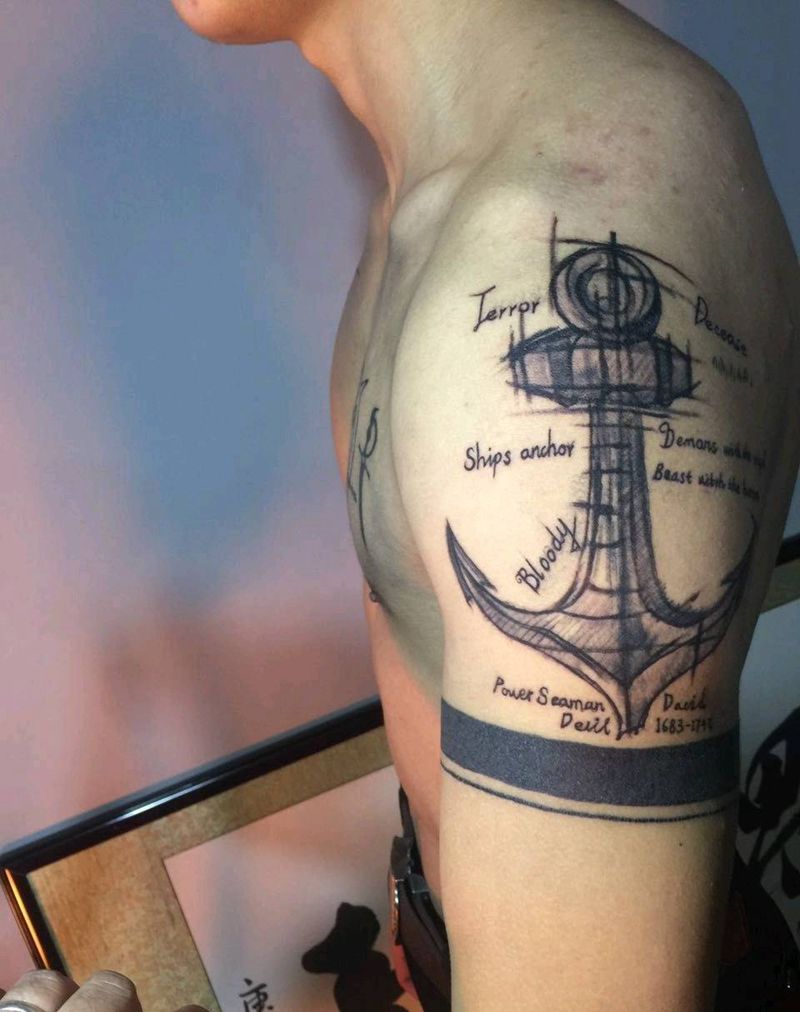 船锚设计草图纹身图片