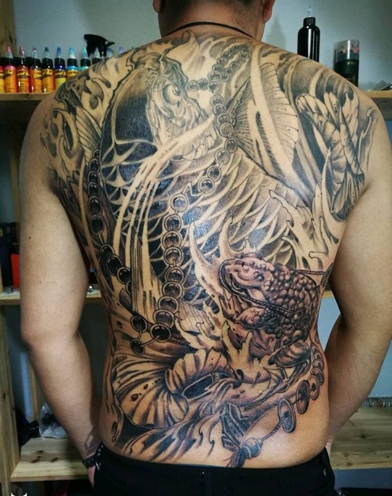 当前位置: 首页 >河北省邯郸市纹身店-色界刺青纹身图案>满背锦鲤加金蟾纹身图片