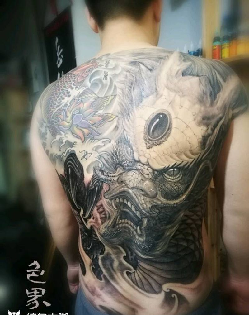 • T云龙九郎纹身图片_背部老传统云龙九郎纹身图案