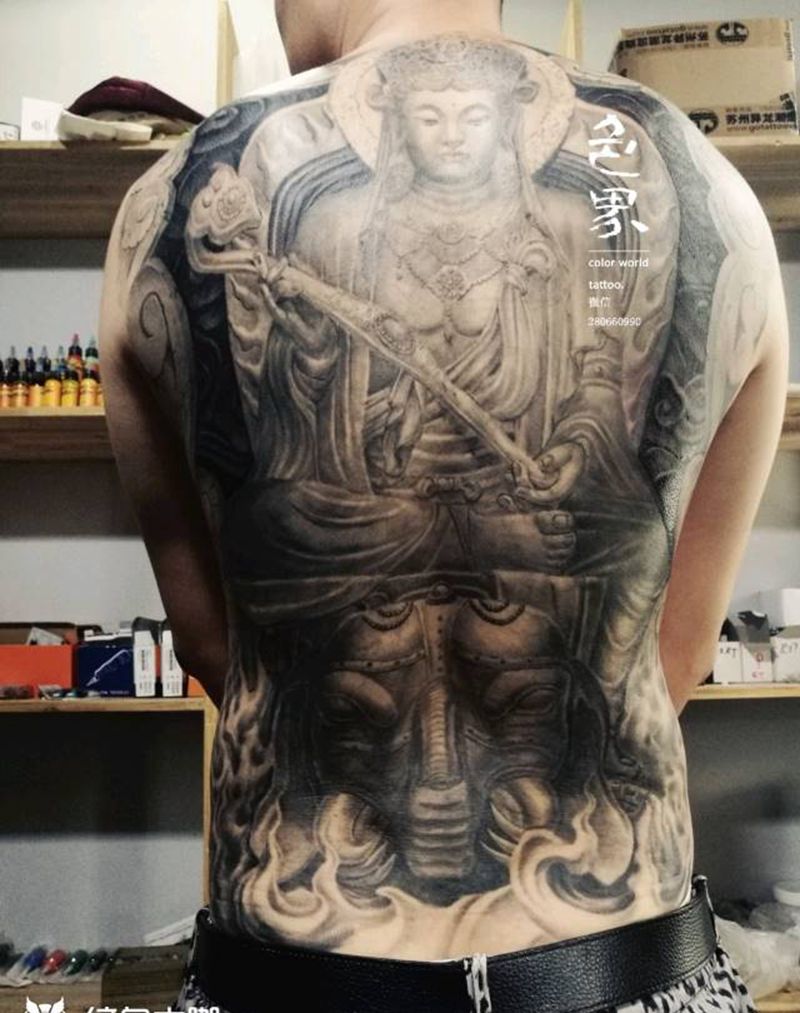 当前位置: 首页 >河北省邯郸市纹身店-色界刺青纹身图案>石雕普贤,此图为遮盖作品纹身图片