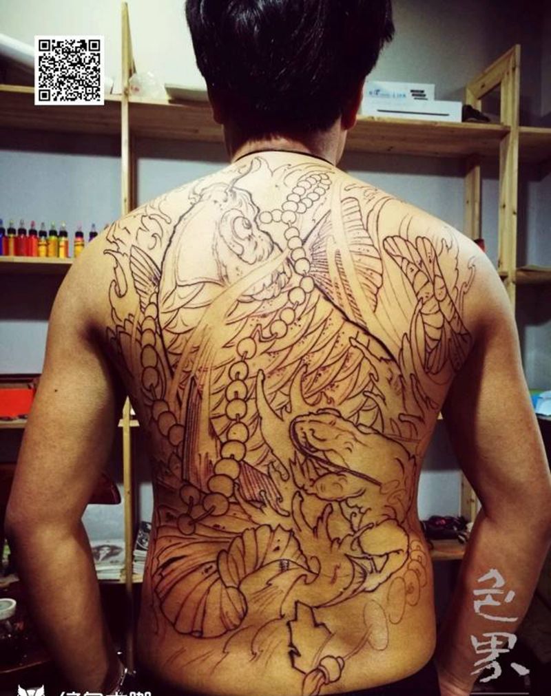 黑灰满背纹身图案