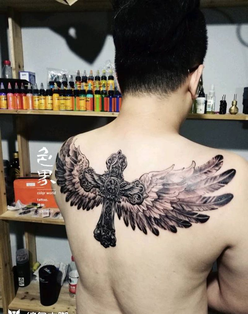 当前位置: 首页 >河北省邯郸市纹身店-色界刺青纹身图案>基督十字架天使翅膀纹身图片