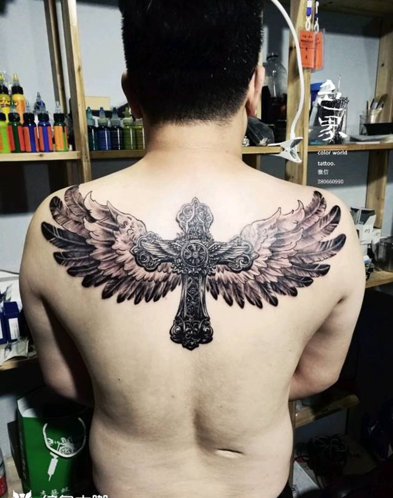 当前位置: 首页 >河北省邯郸市纹身店-色界刺青纹身图案>基督十字架天使翅膀纹身图片