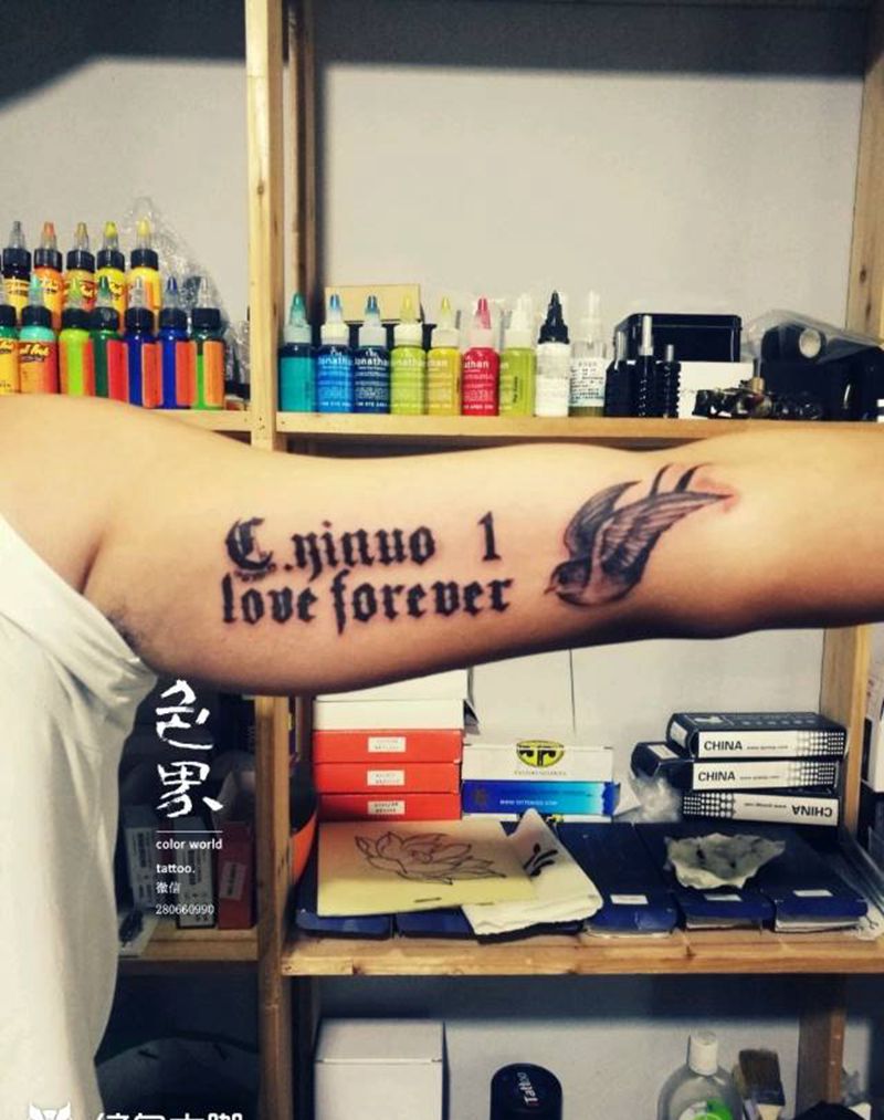 • T家庭图,一家四口生日纪念!纹身图片_手臂纹身图案