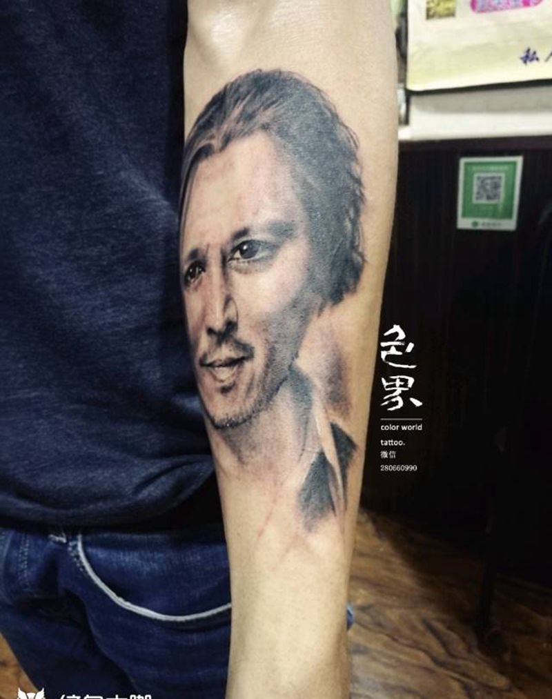 约翰尼·德普 肖像文身纹身图片
