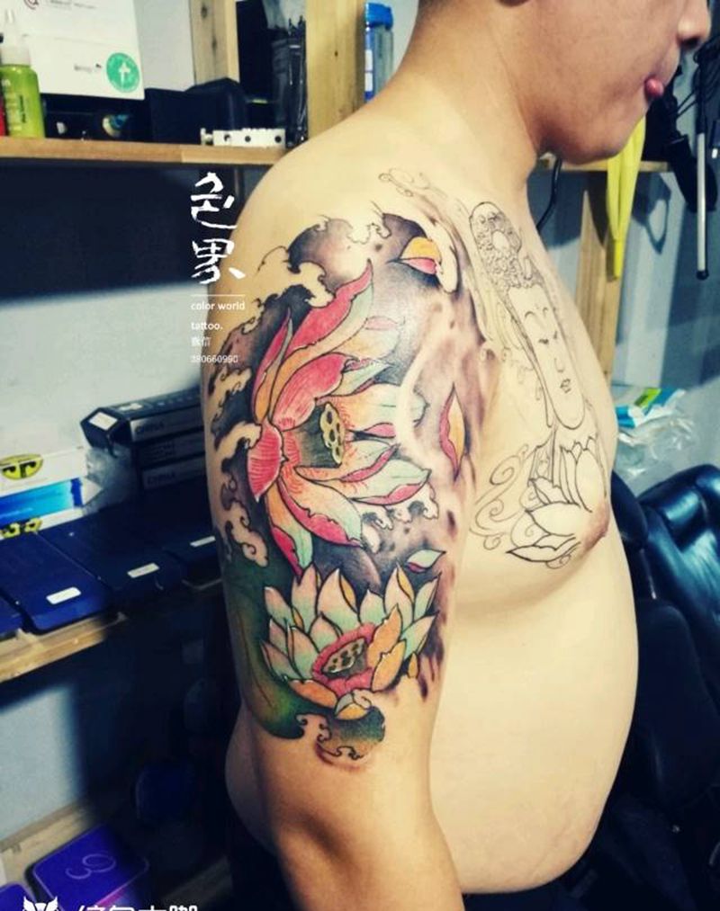一组15张莲花纹身手