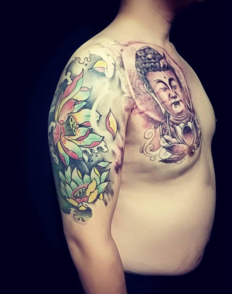 • 女性大花胸纹身_43张霸气漂亮的女性大花胸纹身图案作品