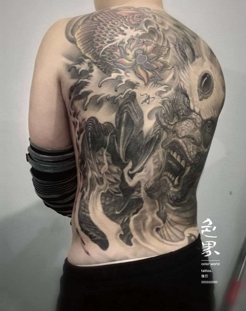 • T云龙九郎纹身图片_背部老传统云龙九郎纹身图案