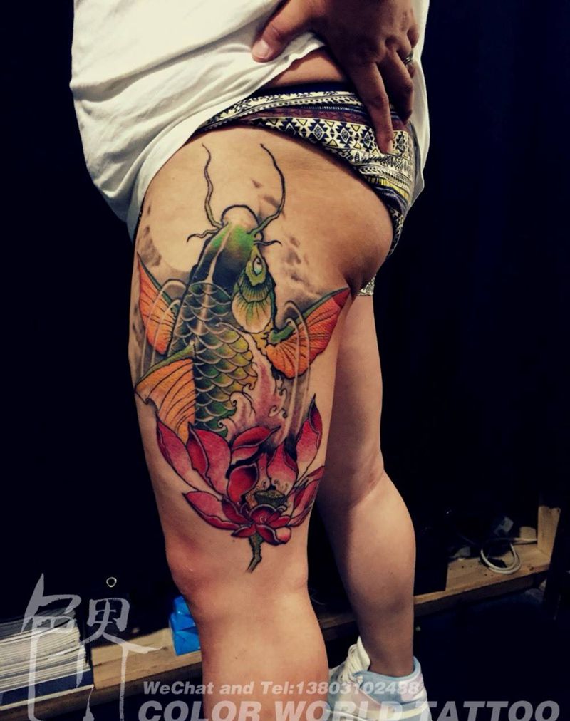 • T网红王老大花腿龙纹身图片_腿部新传统纹身图案