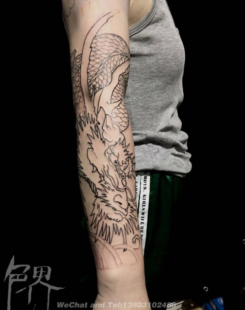 • T网红王老大花腿龙纹身图片_腿部新传统纹身图案