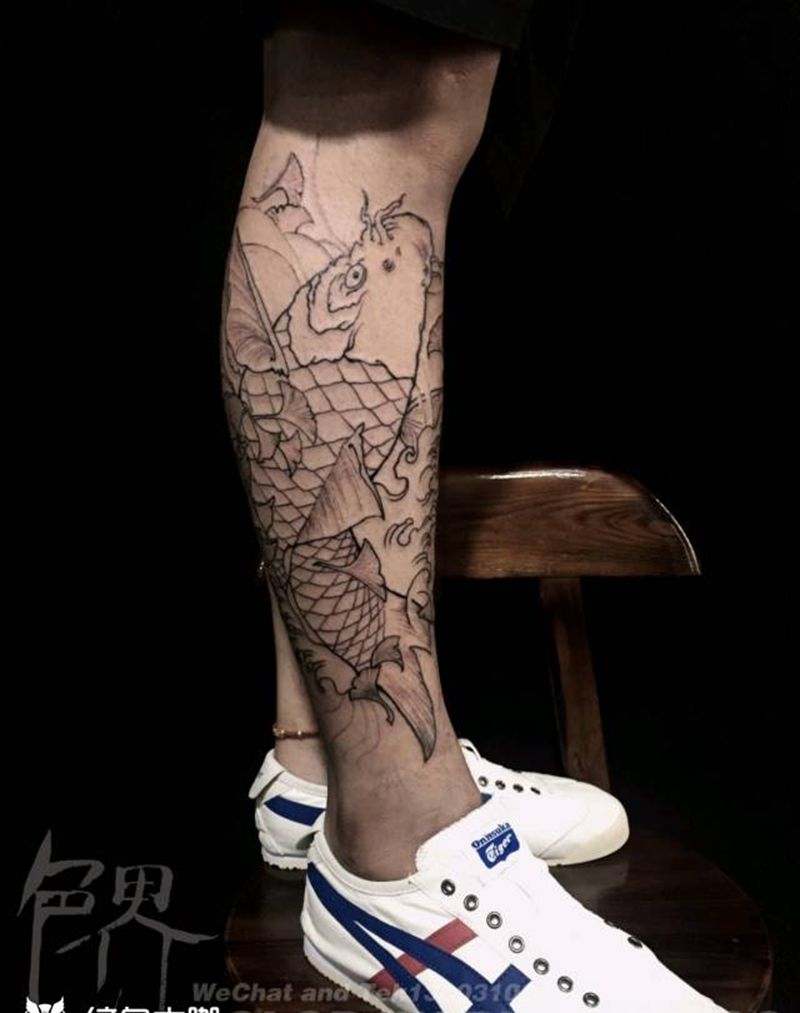 • T网红王老大花腿龙纹身图片_腿部新传统纹身图案