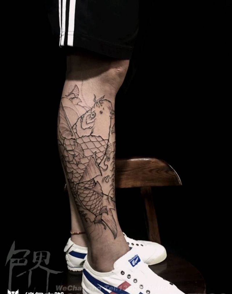 • T网红王老大花腿龙纹身图片_腿部新传统纹身图案