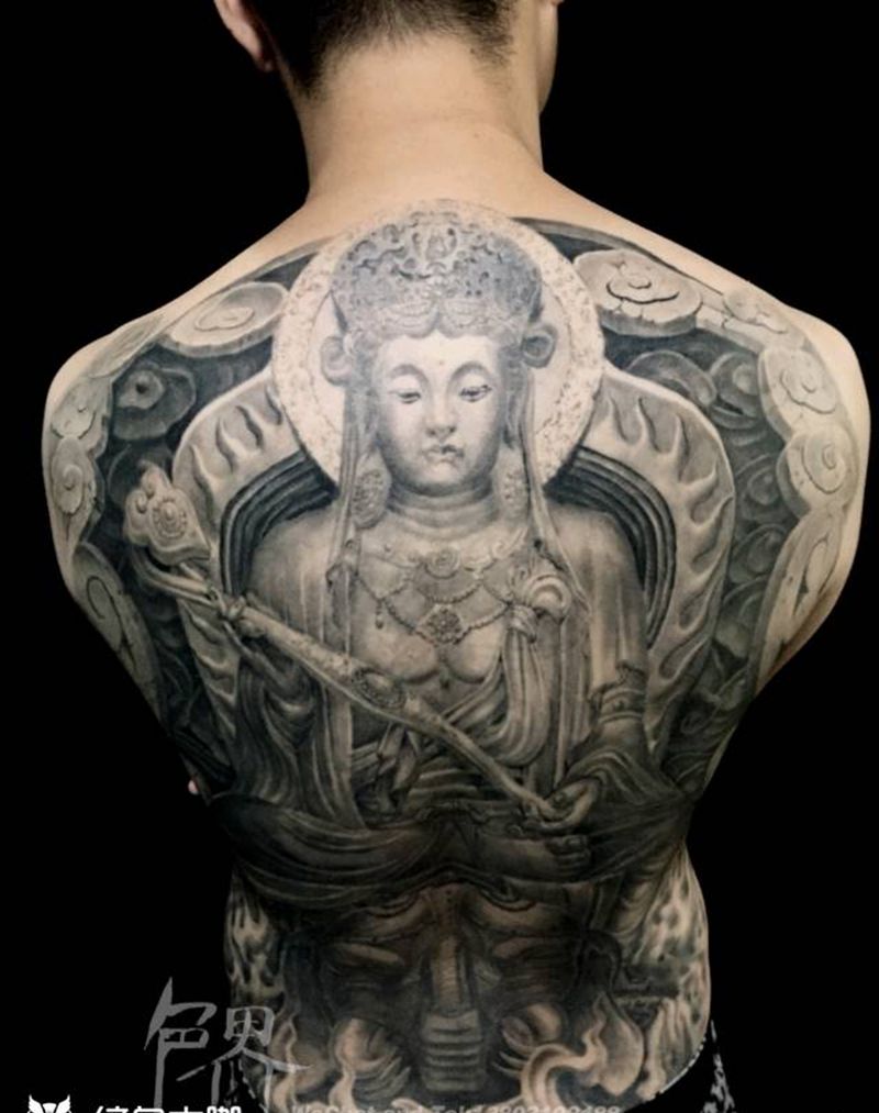 黑灰满背纹身图案