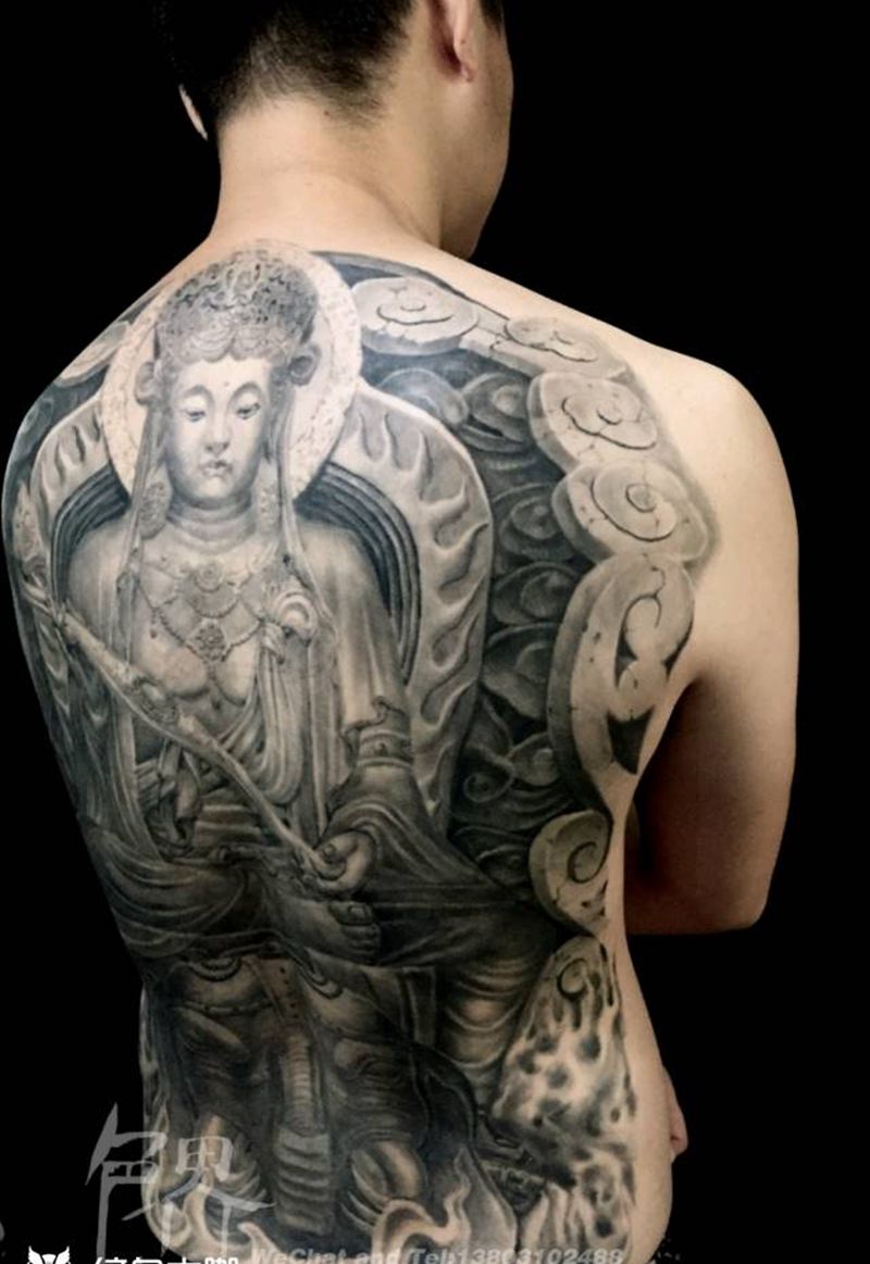 黑灰满背纹身图案