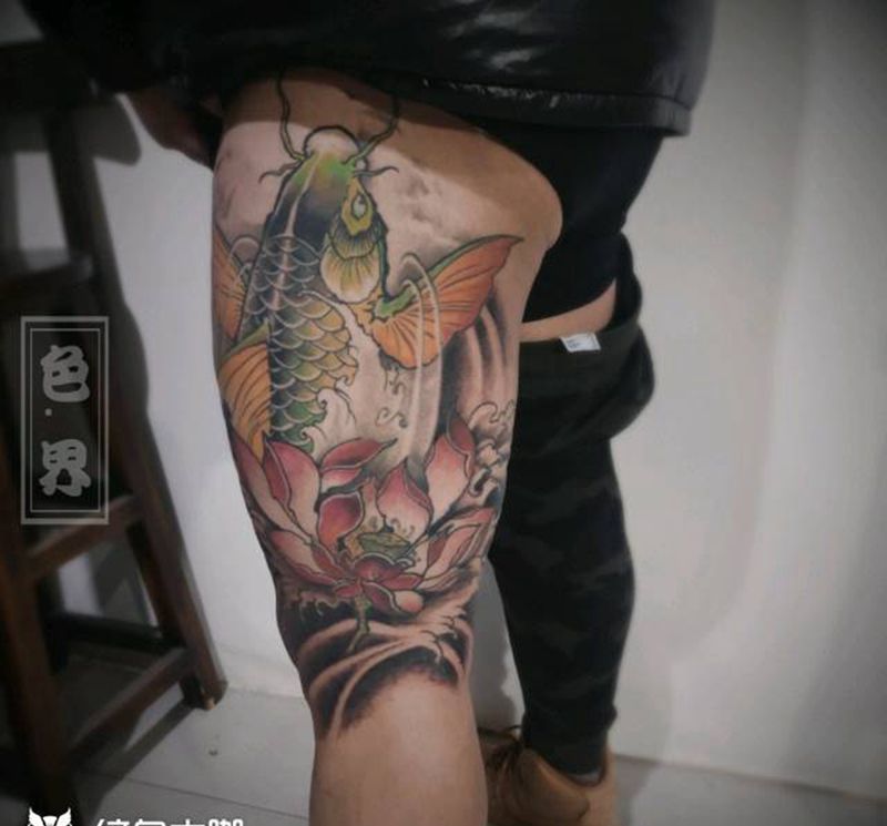 当前位置: 首页 >河北省邯郸市纹身店-色界刺青纹身图案>荷花锦鲤纹身图片_腿部新传统纹身图案