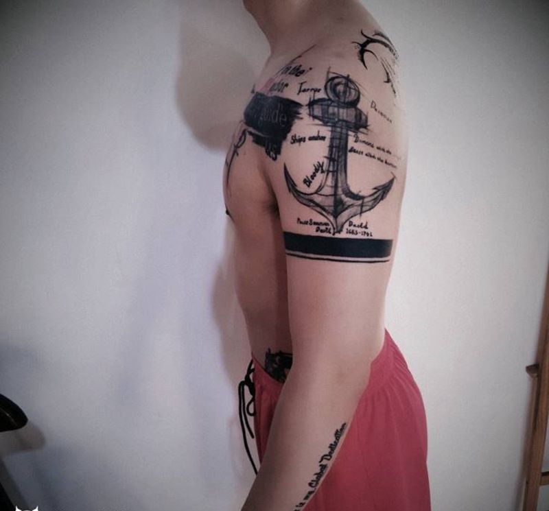 当前位置: 首页 >河北省邯郸市纹身店-色界刺青纹身图案>无题纹身图片_手臂胸部花体字几何纹身图案