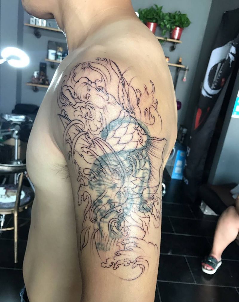 • T网红王老大花腿龙纹身图片_腿部新传统纹身图案