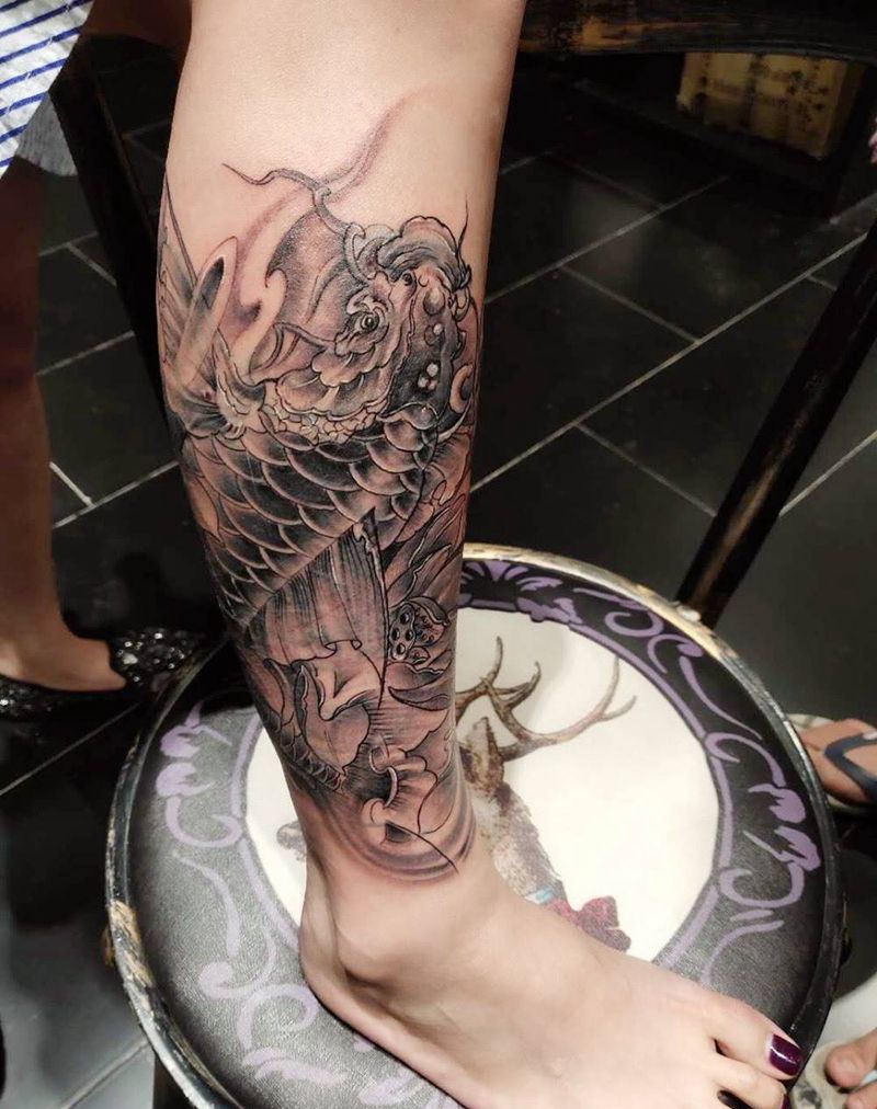 当前位置: 首页 >河北省唐山市纹身店-V·刺青纹身图案>遮盖 小腿鲤鱼纹身图片