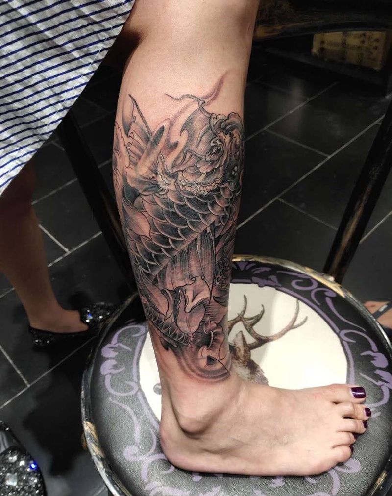 当前位置: 首页 >河北省唐山市纹身店-V·刺青纹身图案>遮盖 小腿鲤鱼纹身图片