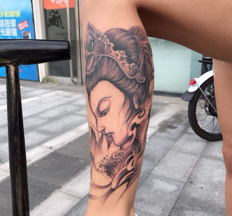艺妓纹身图片_腿部纹身图案