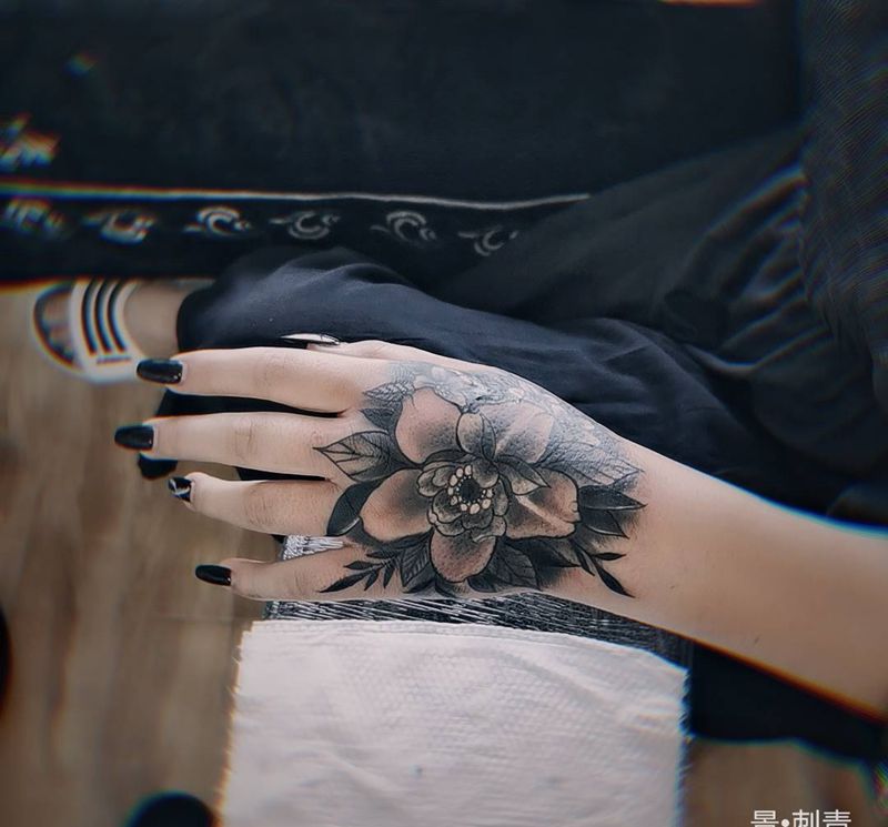 • 手背潮流时尚的玫瑰花眼睛纹身图案