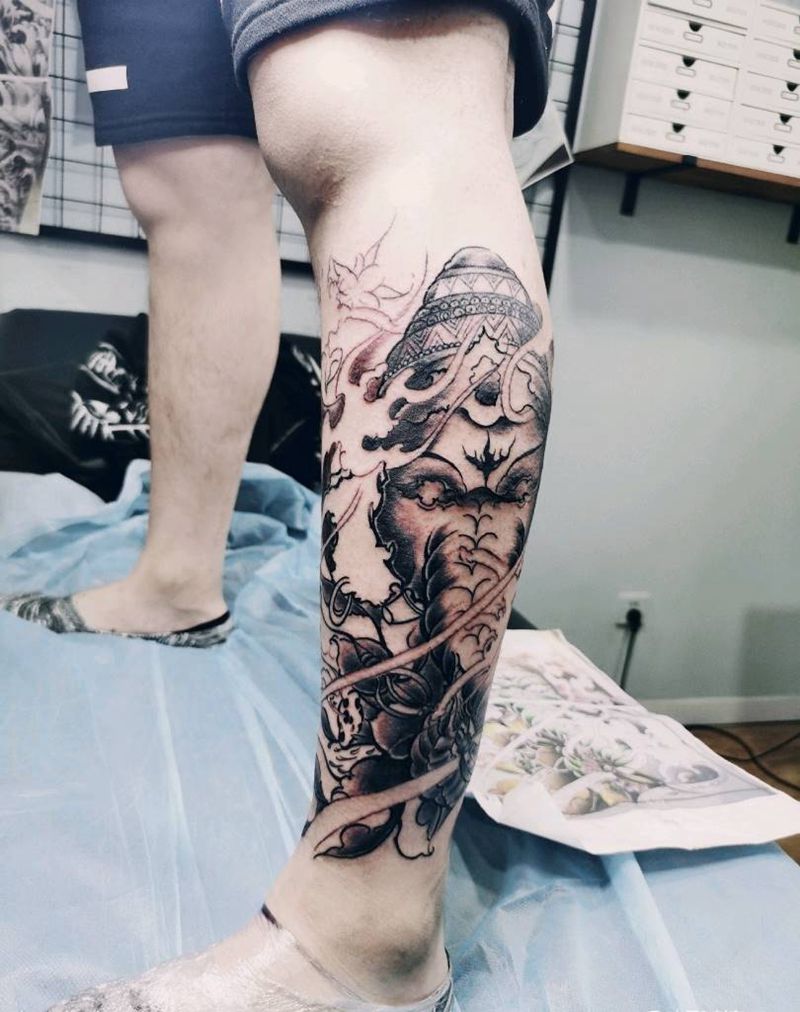 当前位置: 首页 >河北省邯郸市纹身店-景·刺青纹身图案>象神纹身图片_腿部纹身图案