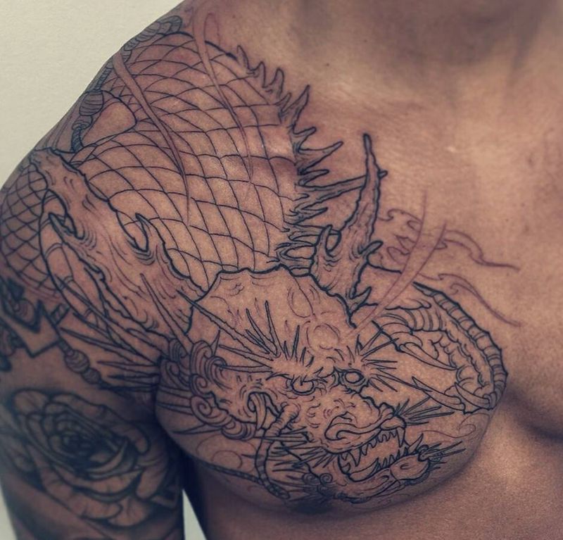 跃龙纹身图片_肩部胸部老传统纹身图案