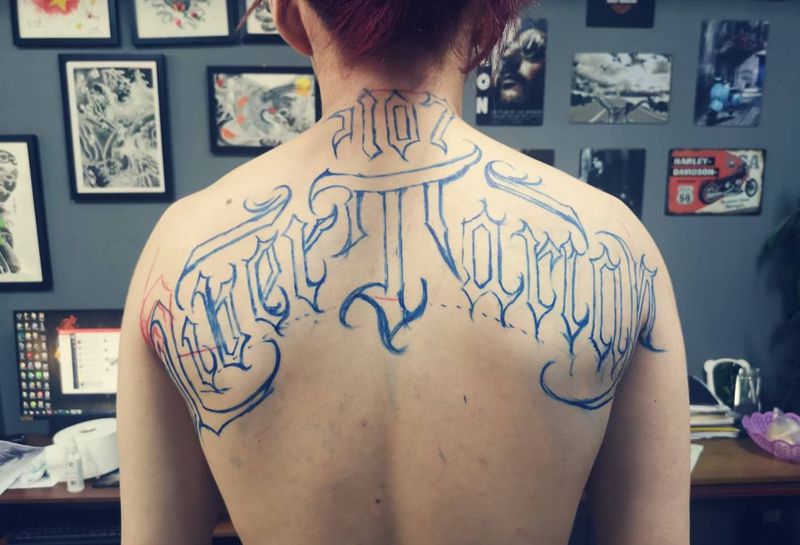当前位置: 首页 >河北省邯郸市纹身店-华-刺青Tattoo纹身图案>花体英文纹身图片_背部花体字纹身图案