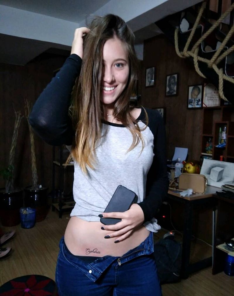 • T关于私处得爱!纹身图片_成品腹部清新字符图腾纹身图案