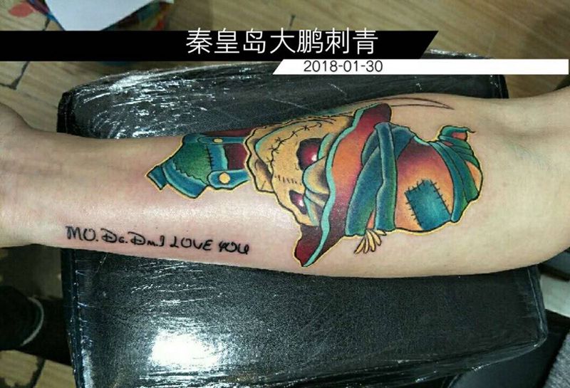 • T包小腿吹火男+阿多福纹身图片_腿部老传统新传统吹火男阿