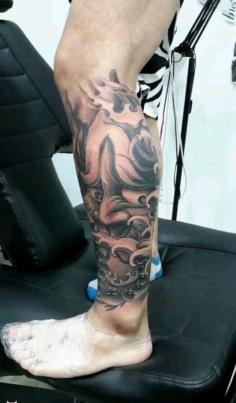 • T网红王老大花腿龙纹身图片_腿部新传统纹身图案